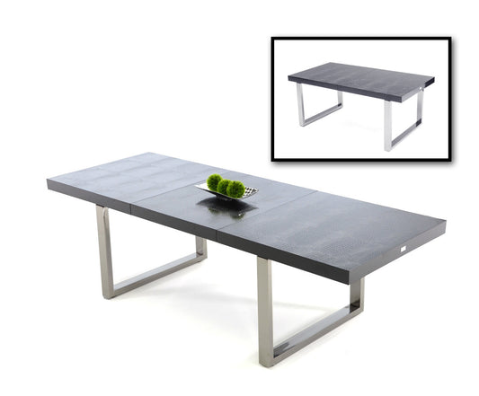 A&X Skyline - Modern Black Crocodile Lacquer Extendable Dining Table