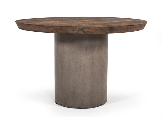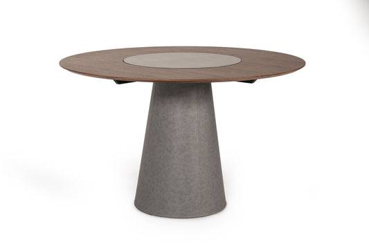 Modrest Renzo Modern Round Oak & Concrete Dining Table