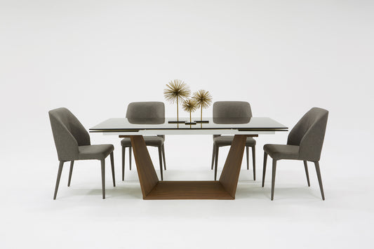 Modrest Babia Modern Smoked Glass & Walnut Extendable Dining Table