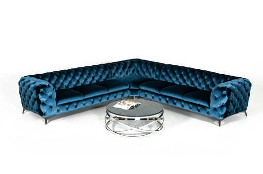 Divani Casa Darla - Modern Blue Velvet Curved Sectional Sofa