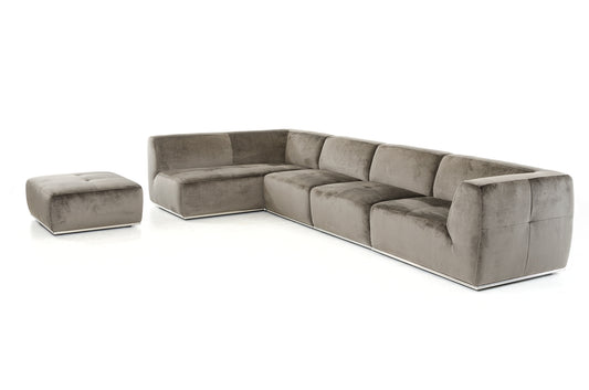 Divani Casa Hawthorn - Modern Grey Fabric Modular Left Facing Sectional Sofa + Ottoman