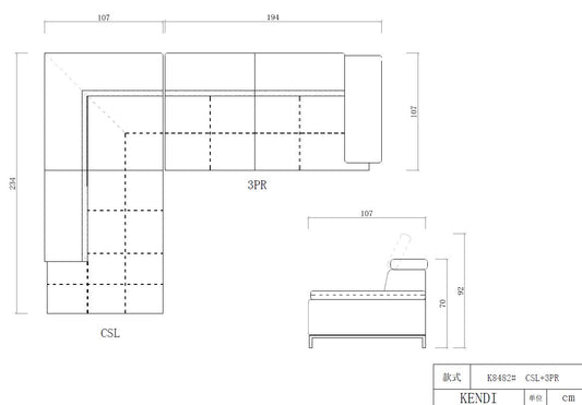 Divani Casa Kenton - Modern Grey Fabric Right Facing Sectional Sofa