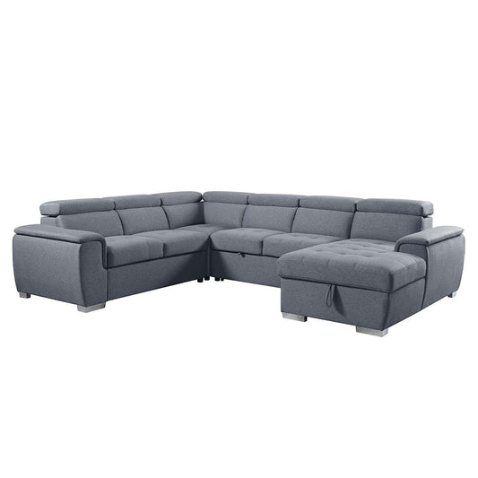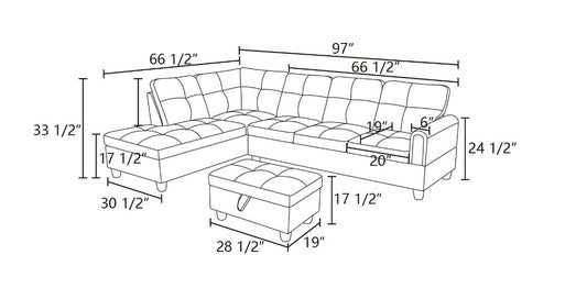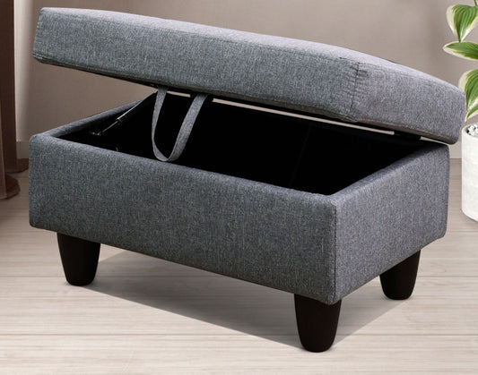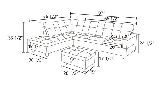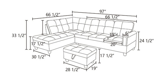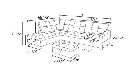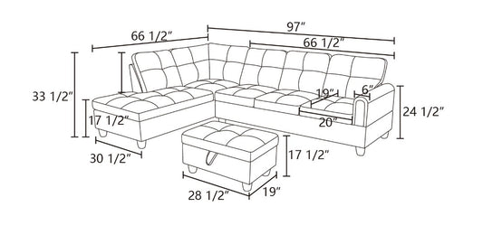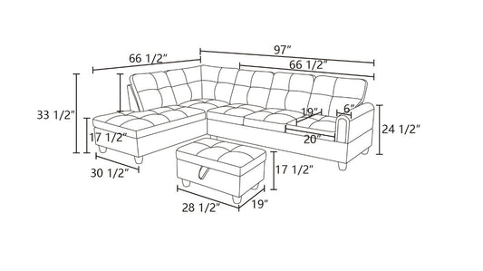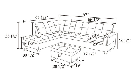 1- Light Grey Flannel Sectional with Storage Ottoman