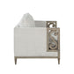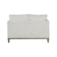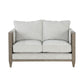 Dimensions by Inches: Length x Width x Height 56x38x36H Description: KD Back, Loose Back & Seat Cushion (2+2) FEATURES: Oversized Wooden Scrolled Motifs CONSTRUCTION SEAT: Full Foam; Inside Frame: Wood, Box Cushion (NOT Reversible) BACKREST: Loose, Box Cushion w/Welt ARMREST: High Shelter & Wood Scrolled Motif Wood Tapered LEG & Trim Base: Finish; Leg Size: 7"H (178mm) Material: Fabric (Solid Pattern) NO Pillows Included Color: Fabric & Salvaged Natural Materials: Upholstery, Wood Leg