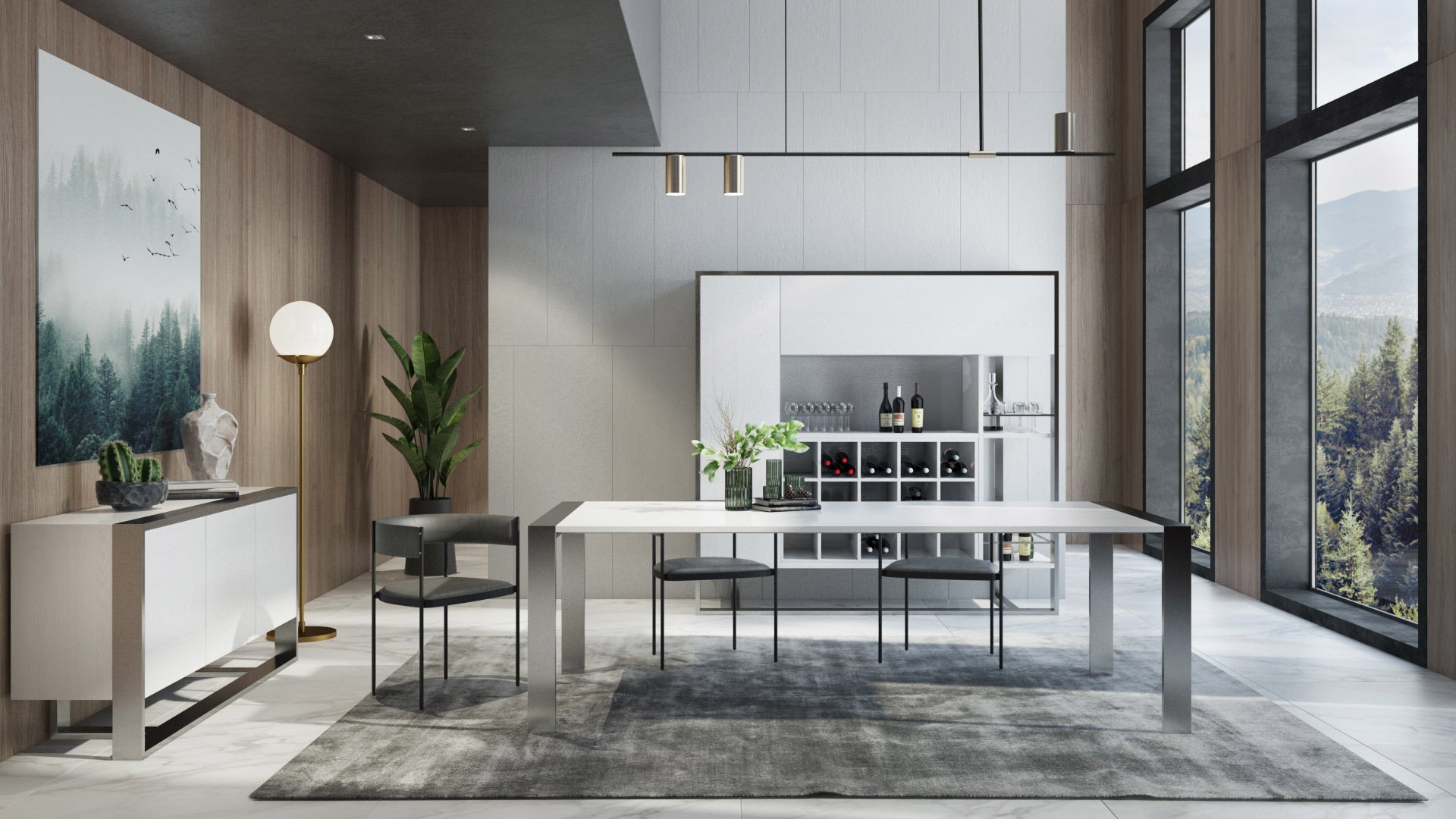 Modrest Fauna - Modern White High Gloss & Stainless Steel Chrome Dining Table