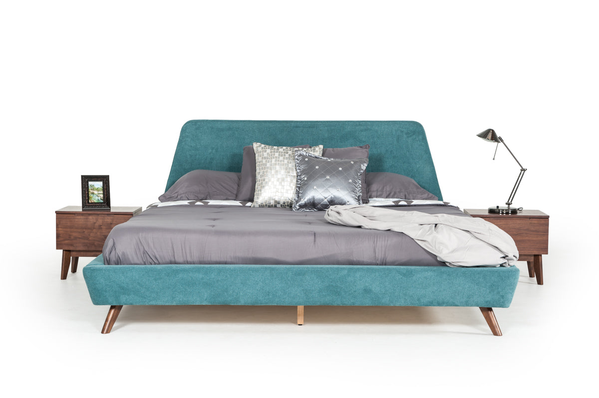 Modrest Lewis Mid-Century Modern Teal & Walnut Bed