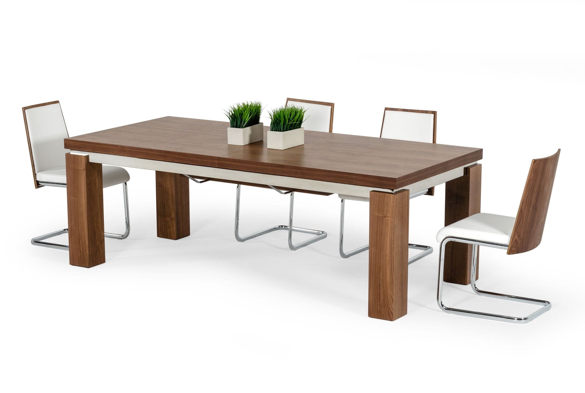 Modrest Maxi - Modern Walnut & Stainless Steel Dining Table